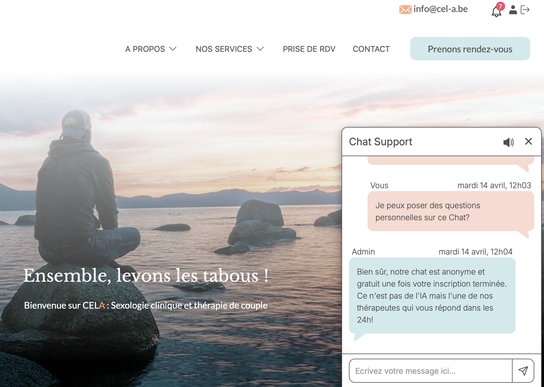 Après une inscription anonyme, vérifiez régulièrement votre Chat car c'est l'unique moyen d'échanger avec vous, en dehors des consultations.