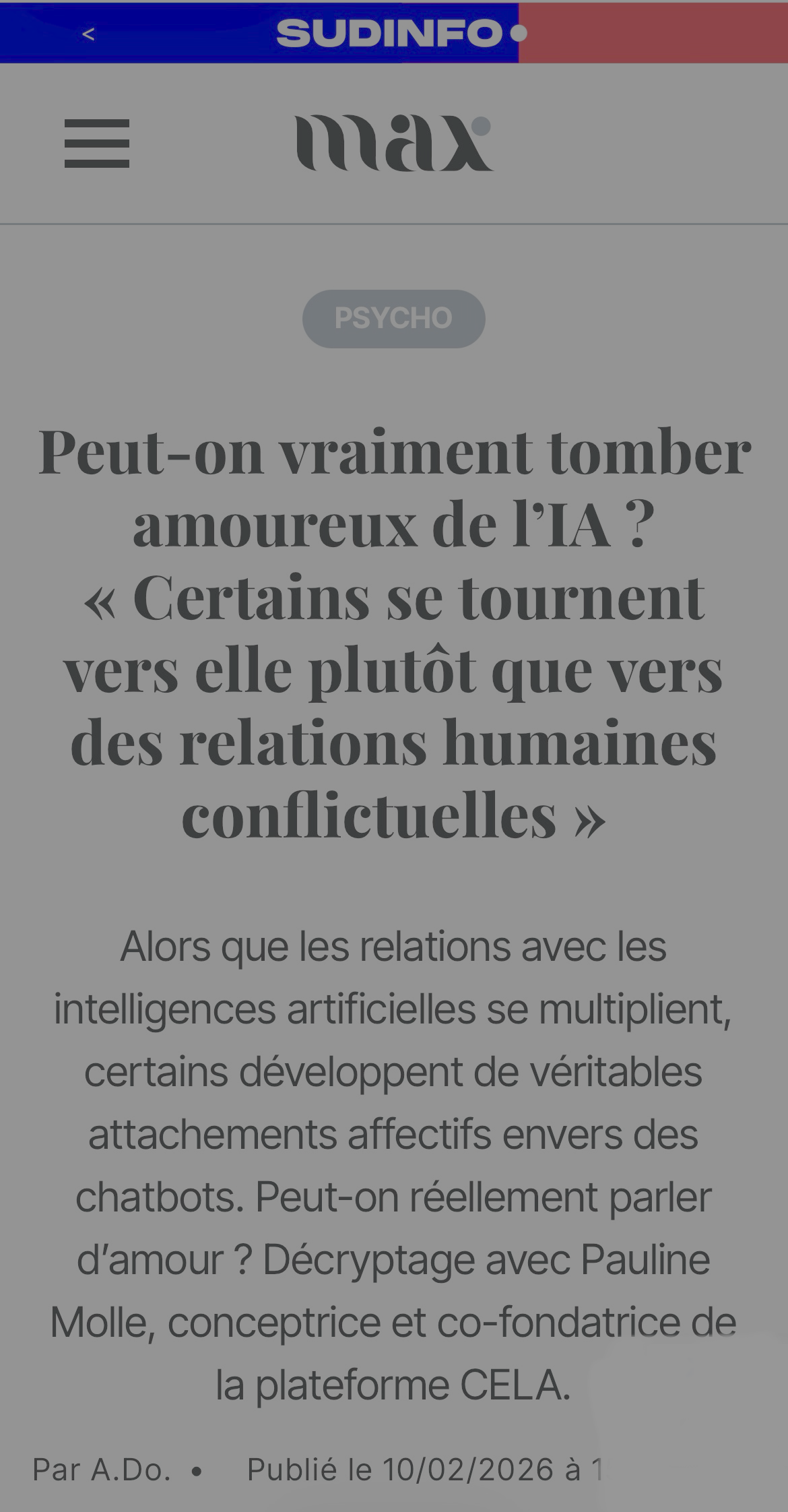 Dans cet article du Sud Info Max, Pauline, conceptrice et co-fondatrice de CEL-A, analyse les paradoxes des rencontres amoureuses à l’ère des applications et des réseaux sociaux.